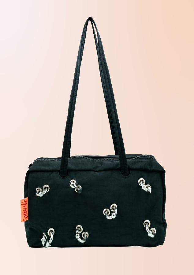The Pierced Pochette takes your favorite BAGGU night-out-bag and gives it a little attitude with custom metal piercings inspired by body jewelry. Lightweight, compact, and effortlessly cool, it’s made for nights out, quick errands, and moments when you only need the essentials.