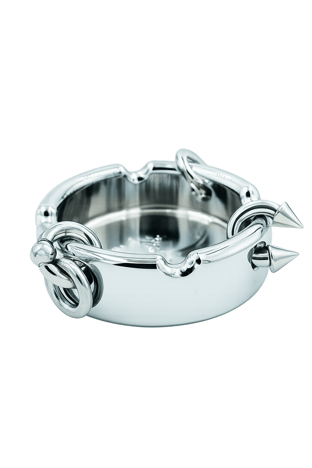 Not your grandmother’s ashtray. The Pierced Ashtray is crafted in heavy weight aluminum, finished in high-shine chrome and detailed with removable ring hardware. Part functional object, part sculpture. Designed to hold your smoke and your attention.